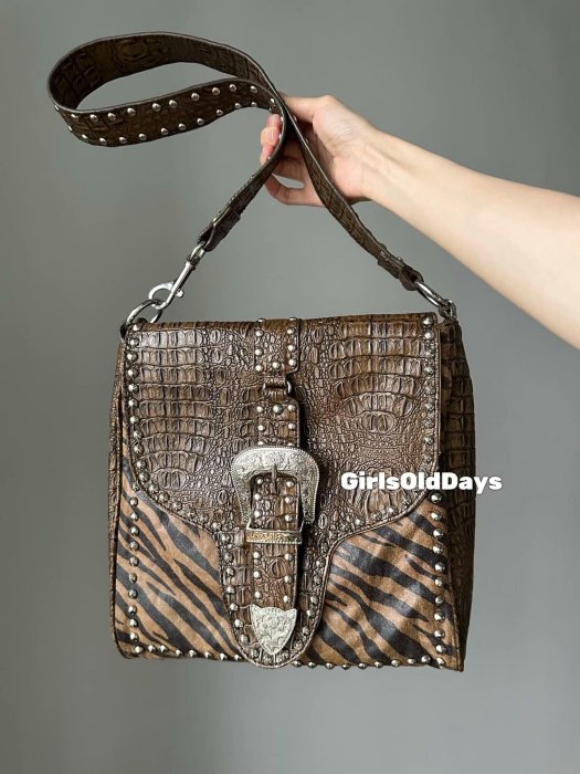 優寶購物《ubao.Tw》特貨品商城,黑貓宅配,取貨付款,嚴選中古動物紋鉚釘斜挎包 cm 容納12.9寸iPad 小瑕疵影響不大 鉚釘細節依然顯著 中古精品斜跨包 皮件 斜背袋 | Yahoo拍賣