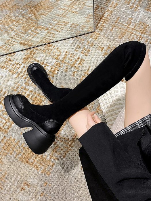 優寶購物《ubao.Tw》特貨品商城,黑貓宅配,取貨付款,新上架2025款新款過膝靴長靴女粗跟長筒靴顯瘦彈力高筒靴子 | Yahoo拍賣