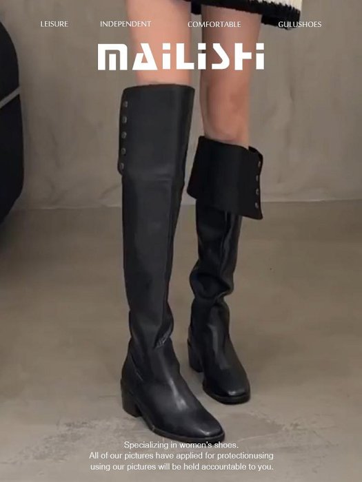 優寶購物《ubao.Tw》特貨品商城,黑貓宅配,取貨付款,新上架2025款新款過膝長靴女粗跟高筒騎士靴方頭顯瘦彈力堆堆靴女兩穿靴子 | Yahoo拍賣