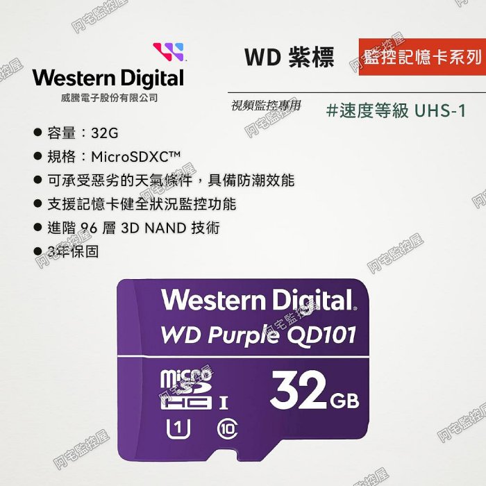優寶購物《ubao.Tw》特貨品商城,黑貓宅配,取貨付款,【阿宅監控屋〡WD威騰】MicroSDHC 高耐寫記憶卡 32GB|網路攝影機|無線|IP Cam|⏱️現貨 ✅附發票 | Yahoo拍賣