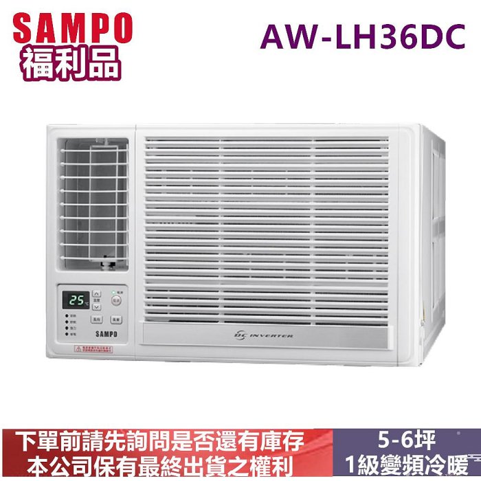 優寶購物《ubao.Tw》特貨品商城,黑貓宅配,取貨付款,(福利品)SAMPO聲寶5-6坪一級變頻冷暖左吹窗型冷氣AW-LH36DC | Yahoo拍賣