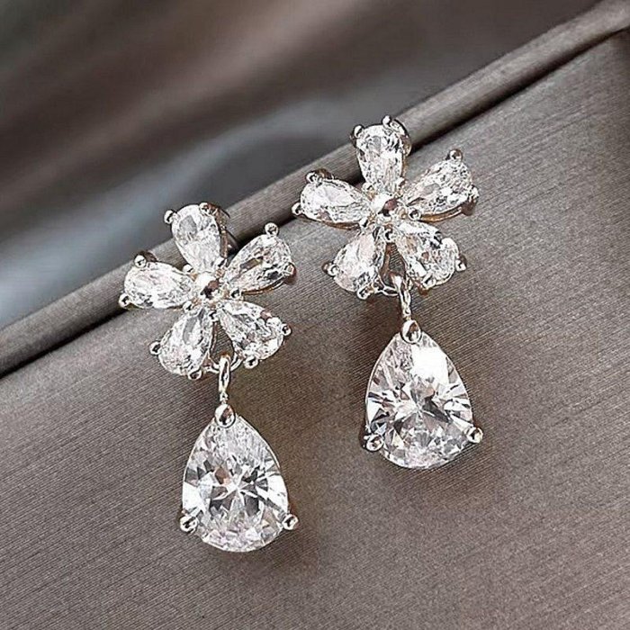 優寶購物《ubao.Tw》特貨品商城,黑貓宅配,取貨付款,(小燕子日韓小物) 《9083》韓版輕奢小眾精緻鑲鑽銀色耳環 水滴寶石花朵復古氣質耳釘 | Yahoo拍賣