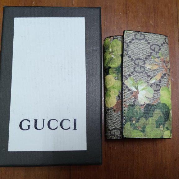 優寶購物《ubao.Tw》特貨品商城,黑貓宅配,取貨付款,GUCCI 天竺葵印花鑰匙包(綠) | Yahoo拍賣