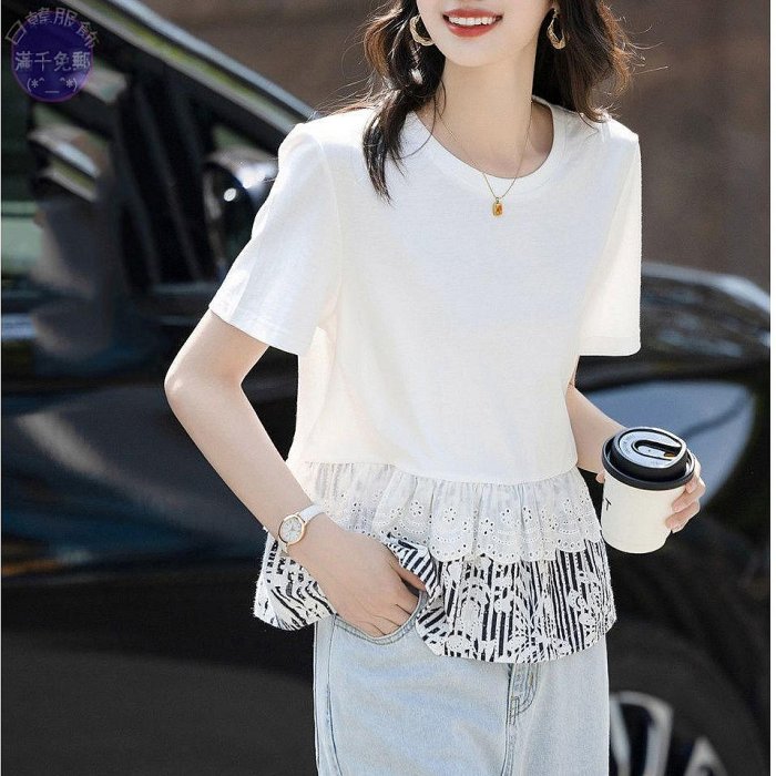 優寶購物《ubao.Tw》特貨品商城,黑貓宅配,取貨付款,日韓服飾=夏季時髦拼接打底衫舒適圓領寬松短袖女式T恤簡約設計感減齡上衣=針織短袖T恤襯衫雪紡女生上衣 | Yahoo拍賣