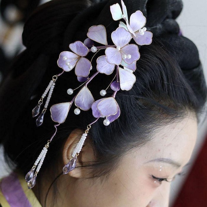 優寶購物《ubao.Tw》特貨品商城,黑貓宅配,取貨付款,紫藤花巨美~~掐絲絨花頭飾蠶絲絨花手工髮飾流蘇漢服飾品古風飾() | Yahoo拍賣