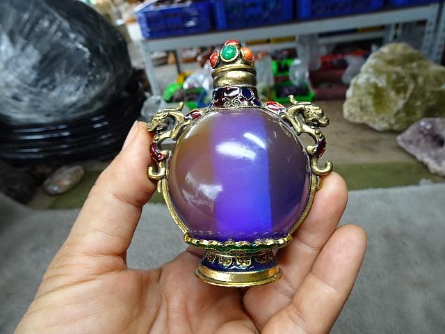優寶購物《ubao.Tw》特貨品商城,黑貓宅配,取貨付款,《藍晶寶石→〈成品系列〉→天然高仿琥珀鑲嵌綠松石*寶藍.綠貓眼石 雙龍拱珠 鼻煙壺→V150 | Yahoo拍賣