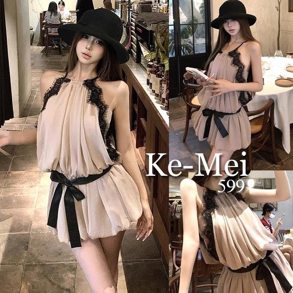 優寶購物《ubao.Tw》特貨品商城,黑貓宅配,取貨付款,克妹Ke-Mei【ZT87611】秋`法式浪漫乾燥玫瑰粉併接睫毛蕾絲綁帶花苞裙洋裝 | Yahoo拍賣