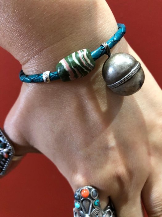 優寶購物《ubao.Tw》特貨品商城,黑貓宅配,取貨付款,嚴選摩洛哥老銀幸運手繩,手工打造非洲 TRADE 粘土珠與鈴鐺,精致皮質手繩,小巧雅致 非洲貿易珠 老銀 雞血石 | Yahoo拍賣