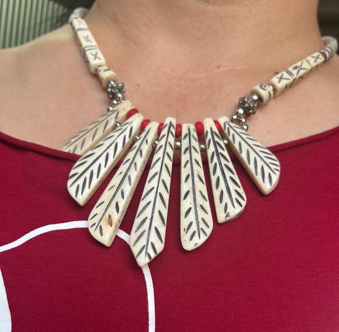 優寶購物《ubao.Tw》特貨品商城,黑貓宅配,取貨付款,嚴選中古牛骨鎖骨鏈,手工雕琢羽毛與柱子,天然紅珠點綴,獨特部落風設計推薦收藏 青銅器 古董鎖骨鏈 老工藝 | Yahoo拍賣