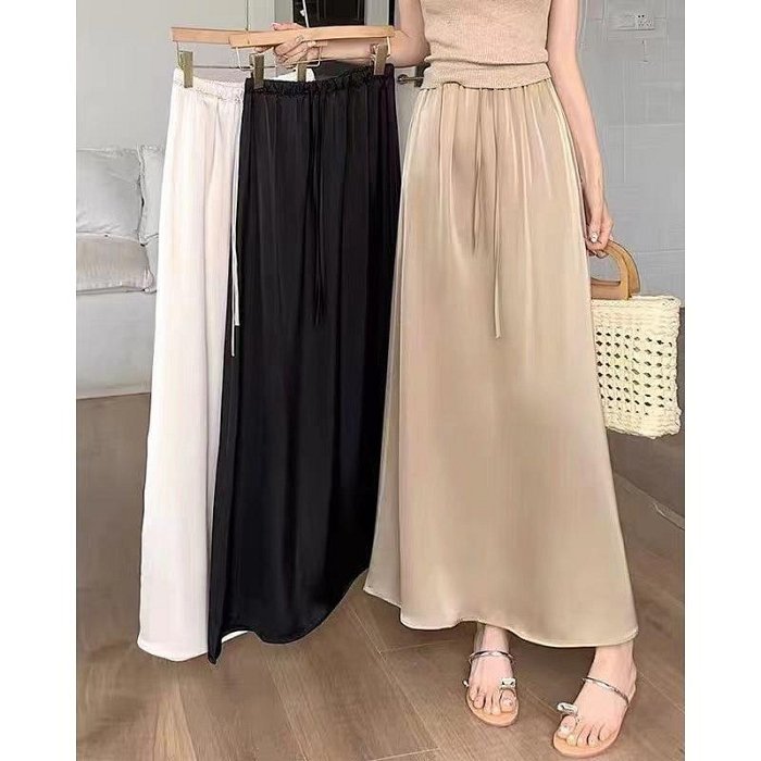 優寶購物《ubao.Tw》特貨品商城,黑貓宅配,取貨付款,孕婦高級醋酸緞面抽繩半身裙夏季2025新款抽繩中長款垂感遮胯傘裙 | Yahoo拍賣