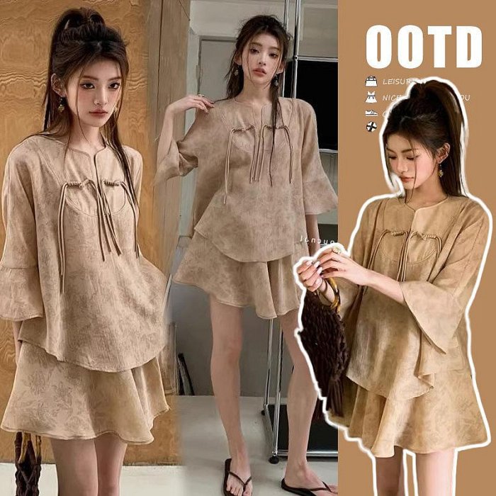 優寶購物《ubao.Tw》特貨品商城,黑貓宅配,取貨付款,代發孕婦裝夏裝套裝新款洋氣國風新中式設計感上衣短褲裙連衣裙兩 | Yahoo拍賣