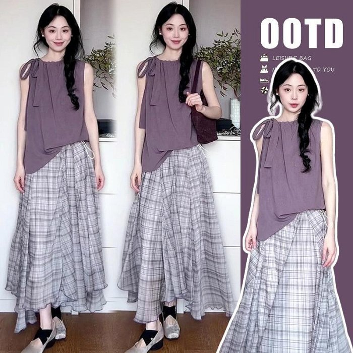 優寶購物《ubao.Tw》特貨品商城,黑貓宅配,取貨付款,孕婦法式別致絕美紫色襯衫女設計感小眾氣質無袖背心半身裙套裝 | Yahoo拍賣