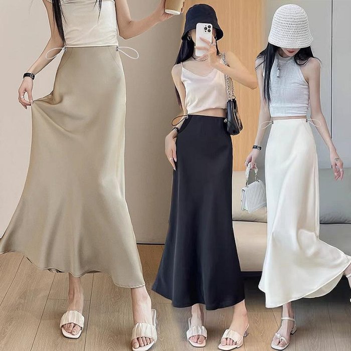 優寶購物《ubao.Tw》特貨品商城,黑貓宅配,取貨付款,孕婦夏醋酸緞面無托腹豬鼻扣調節半身裙春絲滑字包臀魚尾裙長款 | Yahoo拍賣