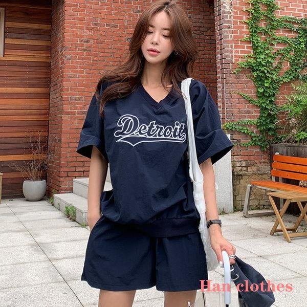 優寶購物《ubao.Tw》特貨品商城,黑貓宅配,取貨付款,HELLOBYE 寬鬆落肩刺繡字母套裝 正韓 韓國連線 | Yahoo拍賣
