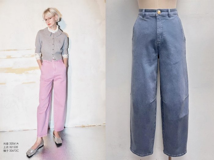 優寶購物《ubao.Tw》特貨品商城,黑貓宅配,取貨付款,※funnyy_lee※ KAO MEIFEN 高美芬 2024秋冬 全新 灰藍色/粉紫色 後腰鬆緊 車褶繭型牛仔褲 | Yahoo拍賣