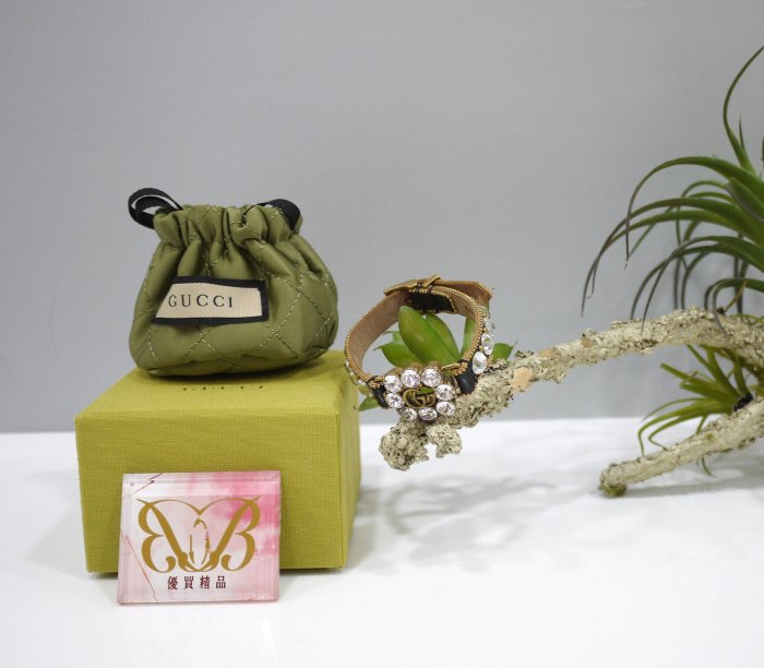 優寶購物《ubao.Tw》特貨品商城,黑貓宅配,取貨付款,☆優買二手精品名牌店☆ GUCCI 648722 GG LOGO 黃銅金屬 花朵 黑色皮革 水鑽 手環 S號 近新美品 B0810 | Yahoo拍賣