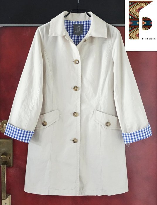 優寶購物《ubao.Tw》特貨品商城,黑貓宅配,取貨付款,☆一身衣飾☆ 日本樫山株式會社旗下品牌【field/dream】米色 藍白小格紋反摺袖 風衣外套~直購價499~九月24蝦 | Yahoo拍賣