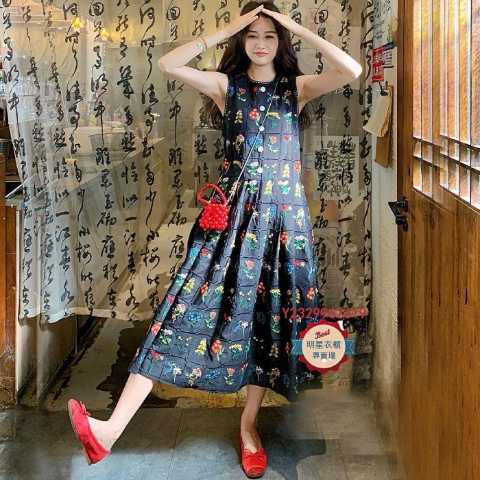 優寶購物《ubao.Tw》特貨品商城,黑貓宅配,取貨付款,明星衣櫃=大碼法式花邊拼接背心裙夏季新款圓領無袖高腰顯瘦A字裙休閑減齡長裙 | Yahoo拍賣