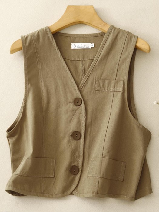 優寶購物《ubao.Tw》特貨品商城,黑貓宅配,取貨付款,復古工裝亞麻馬甲小背心女春夏寬松疊穿V領無袖坎肩短款上衣秋裝 | Yahoo拍賣