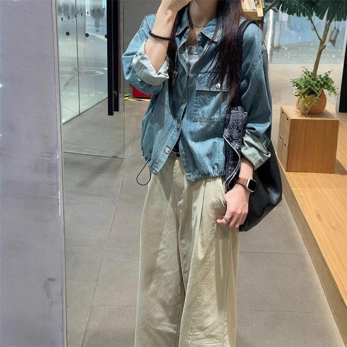 優寶購物《ubao.Tw》特貨品商城,黑貓宅配,取貨付款,☆ANGELA HOUSE☆韓系♡秋水洗復古翻領抽繩設計感牛仔襯衫小外套 ✅商品追加 | Yahoo拍賣