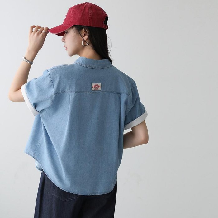 優寶購物《ubao.Tw》特貨品商城,黑貓宅配,取貨付款,Bellee 正韓 可愛背後小布標刺繡A短袖牛仔襯衫上衣 (2色) 【0812-23】 | Yahoo拍賣
