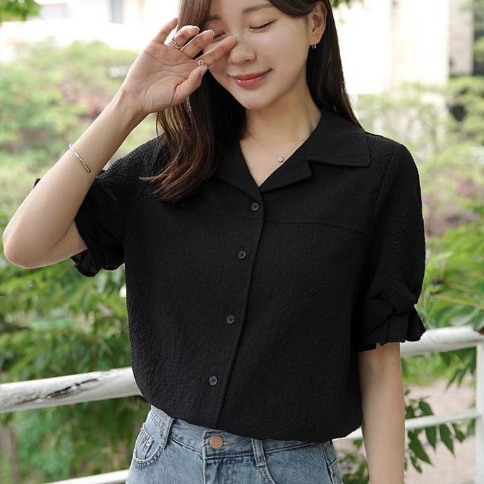 優寶購物《ubao.Tw》特貨品商城,黑貓宅配,取貨付款,Bellee 正韓 俐落泡泡紗抓摺荷葉袖襯衫上衣 (2色) 【0814-5】 | Yahoo拍賣