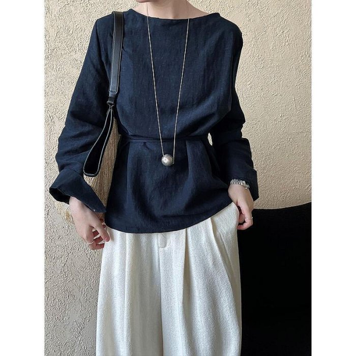 優寶購物《ubao.Tw》特貨品商城,黑貓宅配,取貨付款,【新款】鹿西 法式小眾設計襯衣女秋季新款氣質一字領腰部系帶襯衫8691 | Yahoo拍賣