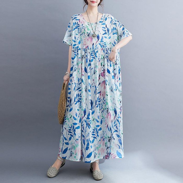 優寶購物《ubao.Tw》特貨品商城,黑貓宅配,取貨付款,夏季新款時尚波西米亞長裙加肥加大短袖圓領印花民族風洋裝 | Yahoo拍賣