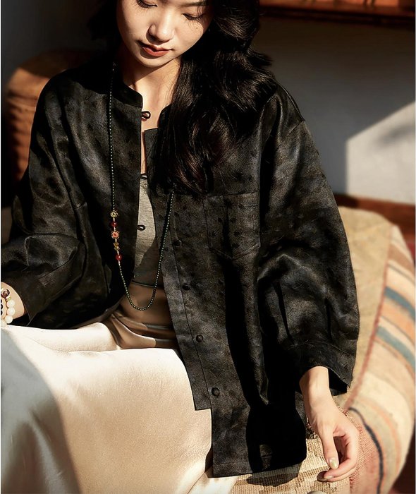 優寶購物《ubao.Tw》特貨品商城,黑貓宅配,取貨付款,~貓老大~中式新型格/23姆米重磅真絲香雲紗/國風提花外套上衣秋季/8.20 | Yahoo拍賣