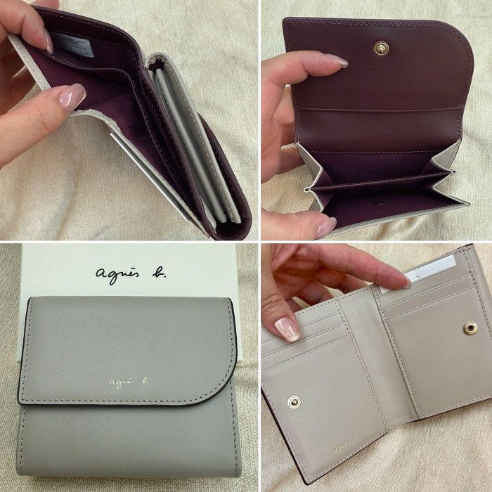 優寶購物《ubao.Tw》特貨品商城,黑貓宅配,取貨付款,全新 agnes b 奶茶色 米色 酒紅色 圓弧 牛皮 真皮 原皮 9卡 皮夾 短夾 錢包 女用 小b 正品 雙色 撞色 | Yahoo拍賣
