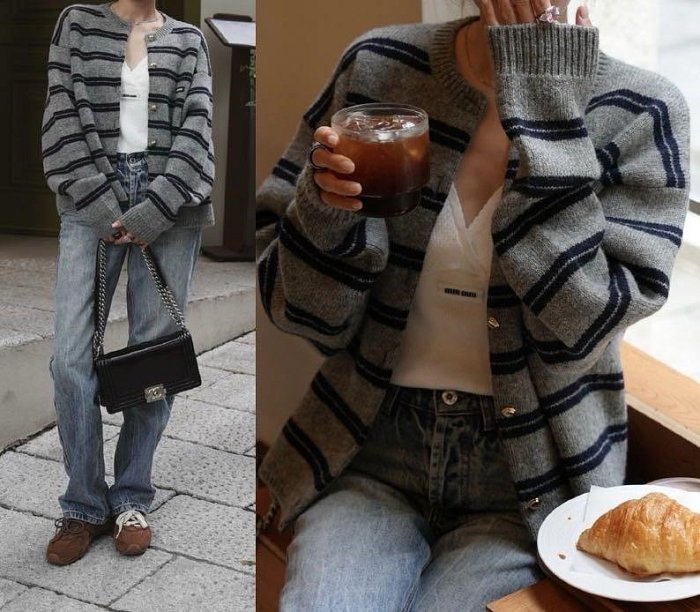 優寶購物《ubao.Tw》特貨品商城,黑貓宅配,取貨付款,歐單 2025年新款...休閒學院風條紋撞色金扣點綴微寬鬆羊毛絨混紡長袖針織開衫/小外套...灰色ON SALE | Yahoo拍賣