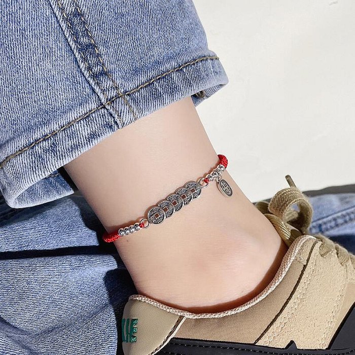 優寶購物《ubao.Tw》特貨品商城,黑貓宅配,取貨付款,【熱品】推薦復古五帝銅錢s925純銀腳鍊女招財納福本命年紅繩編織銀飾品禮物 | Yahoo拍賣