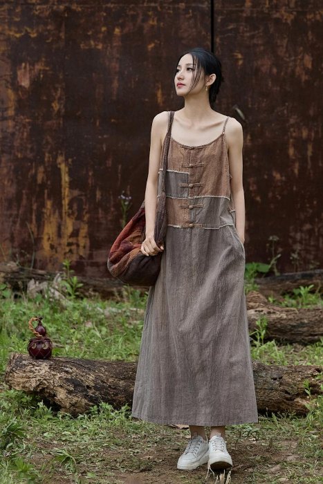 優寶購物《ubao.Tw》特貨品商城,黑貓宅配,取貨付款,燕燕~夏季新款 亞麻莧麻拼接紮染長裙 飄逸清涼女吊帶洋裝 連身裙 | Yahoo拍賣