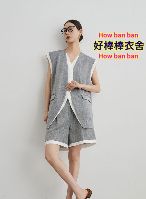 優寶購物《ubao.Tw》特貨品商城,黑貓宅配,取貨付款,好棒棒衣舍_個性撞色蕾絲開衩併接無袖假兩件西裝外搭衫/撞色車邊短褲_都會時尚感 | Yahoo拍賣