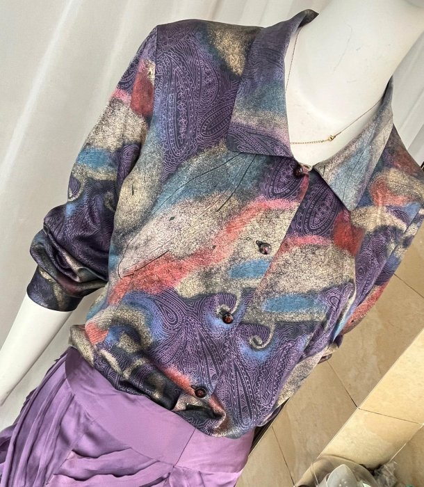 優寶購物《ubao.Tw》特貨品商城,黑貓宅配,取貨付款,嚴選小眾復古L碼絲綢厚襯衫,胸圍98cm,衣長約60cm印染美餉 - 絲綢 印染 上衣 | Yahoo拍賣