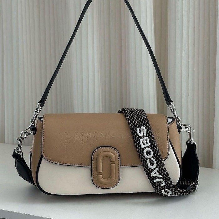優寶購物《ubao.Tw》特貨品商城,黑貓宅配,取貨付款,新款MARC JACOBS 奶茶棕 拼色 細膩牛皮 掀蓋馬鞍包隨身包 斜背包 腋下包 多功能 兩條背帶可拆 簡約時髦 細膩質感 輕量輕便 限量44豆豆家鞋包 | Yahoo拍賣