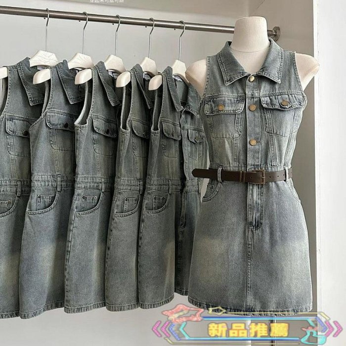 優寶購物《ubao.Tw》特貨品商城,黑貓宅配,取貨付款,025牛仔夏季無袖修身連衣裙美式收腰顯瘦翻領復古牛仔短裙新款 | Yahoo拍賣