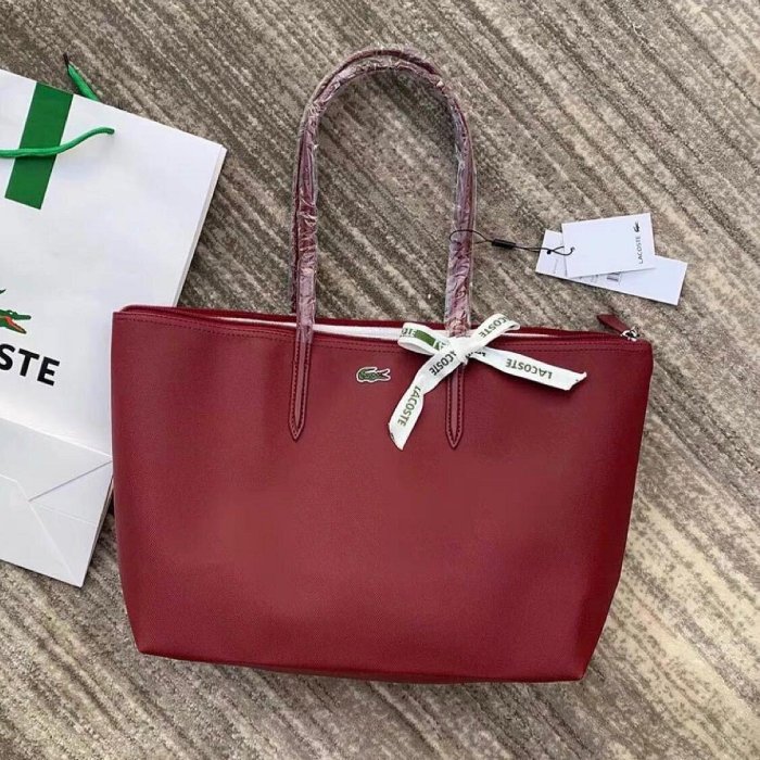 優寶購物《ubao.Tw》特貨品商城,黑貓宅配,取貨付款,新款美國 Lacoste 酒紅 PVC+皮革 時尚拉鍊款輕量托特包 肩背 手提 旅行 出遊 防水 限量優惠3009豆豆家鞋包 | Yahoo拍賣