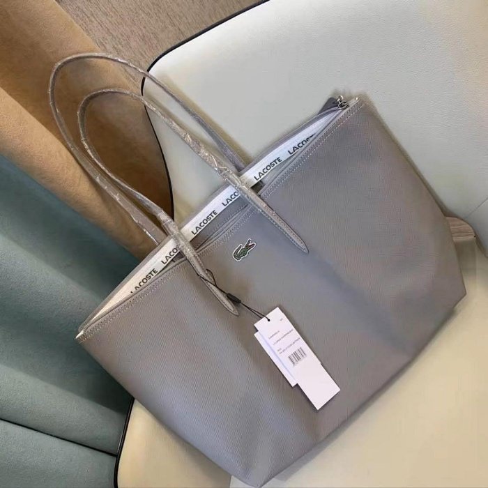 優寶購物《ubao.Tw》特貨品商城,黑貓宅配,取貨付款,新款Lacoste 灰色 PVC+皮革 時尚拉鍊款輕量托特包 肩背 手提 旅行 出遊 防水 限量優惠3013豆豆家鞋包 | Yahoo拍賣