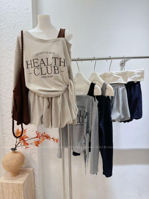 優寶購物《ubao.Tw》特貨品商城,黑貓宅配,取貨付款,【莉莎小屋】正韓 Korea 秋冬新品(代購)✈單側配色肩帶字母套裝 👚👖 E0820 | Yahoo拍賣
