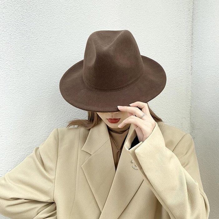 優寶購物《ubao.Tw》特貨品商城,黑貓宅配,取貨付款,【新款】美式復古風毛氈西部牛仔帽女街頭百搭寬簷羊毛呢爵士帽子純色禮帽 | Yahoo拍賣