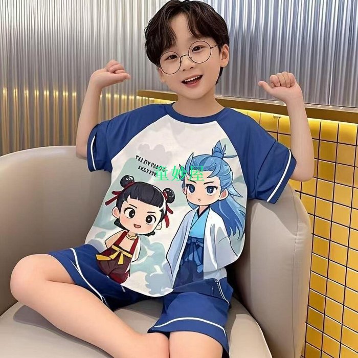 優寶購物《ubao.Tw》特貨品商城,黑貓宅配,取貨付款,親膚舒適⚡兒童 睡衣 男女童仿棉短袖夏季薄款中大童男孩全棉套頭家居服套裝夏-童妙屋 滿599免運 | Yahoo拍賣