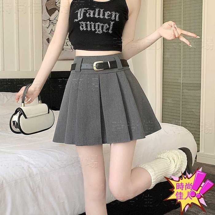 優寶購物《ubao.Tw》特貨品商城,黑貓宅配,取貨付款,時尚佳人=半身裙百褶裙灰色夏季顯瘦新款西裝學院小個子高腰短裙 | Yahoo拍賣