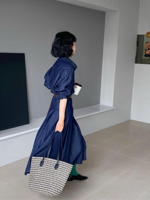 優寶購物《ubao.Tw》特貨品商城,黑貓宅配,取貨付款,復古通勤牛仔襯衫+高腰百褶長裙 ~ 套裝 | Yahoo拍賣