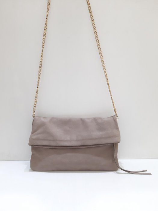 優寶購物《ubao.Tw》特貨品商城,黑貓宅配,取貨付款,西班牙MANGO TOUCH 霚面柔軟牛皮 真皮 奶茶色 折疊 鏈帶 肩背 斜背包 | Yahoo拍賣