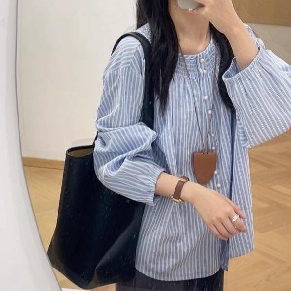 優寶購物《ubao.Tw》特貨品商城,黑貓宅配,取貨付款,上衣【早秋款~鬆緊領口豎條紋寬鬆休閒上衣】☆sandy☆魔法櫥窗V8780 | Yahoo拍賣