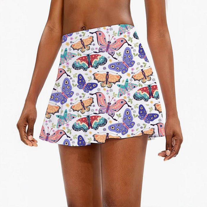 優寶購物《ubao.Tw》特貨品商城,黑貓宅配,取貨付款,亞馬遜熱賣美式復古白色蝴蝶印花短裙女半身裙夏新款休閑運動短裙 | Yahoo拍賣