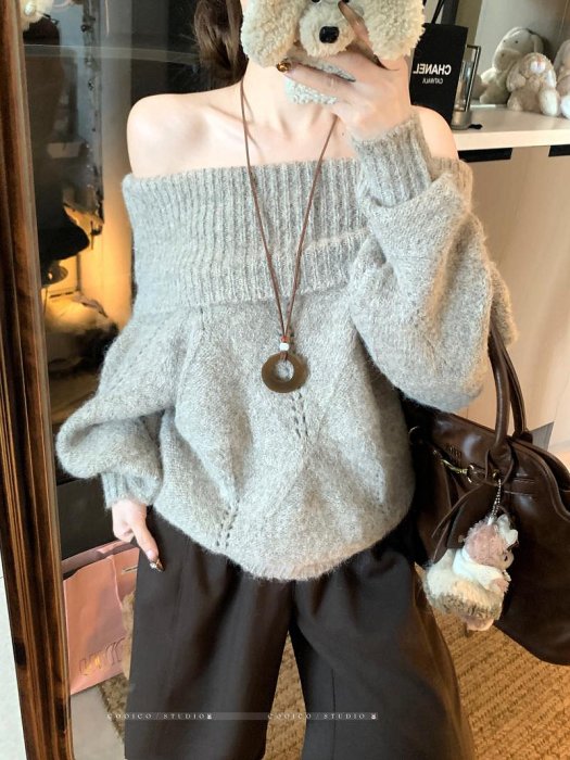 優寶購物《ubao.Tw》特貨品商城,黑貓宅配,取貨付款,秋冬新品 超美基本款 寬版露肩 一字領長袖燕麥色寬版毛衣 毛線衣 秋冬毛衣 長版 百搭 氣質 縷空 | Yahoo拍賣