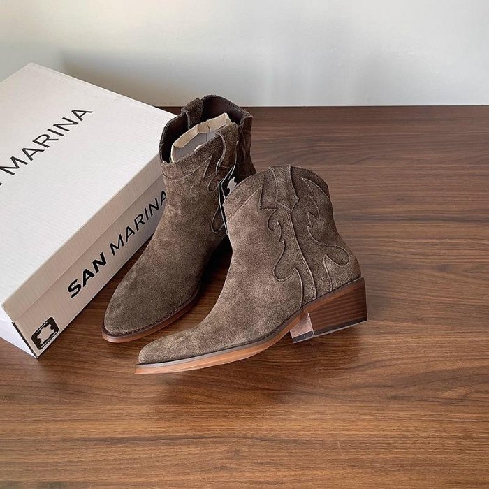 優寶購物《ubao.Tw》特貨品商城,黑貓宅配,取貨付款,=86號店=預購歐美SAN MARINA 真牛絨皮材質 線型造型設計 真皮鞋墊 舒適防滑橡膠底 跟高4公分 女真皮短靴 如圖色 | Yahoo拍賣