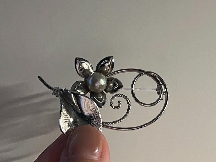 優寶購物《ubao.Tw》特貨品商城,黑貓宅配,取貨付款,嚴選日本 vintage 珍珠胸針,花葉細膩雕工,銀灰色海水珍珠點鑲,適合收藏 珍珠胸針 花紋 鈑金 | Yahoo拍賣